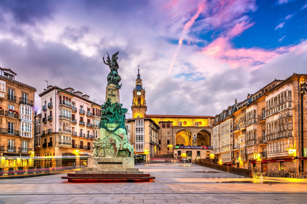 Sede del Parlamento Vasco y capital de Euskadi, Vitoria-Gasteiz es una ciudad verde, repleta de espacios naturales y enclave enoturístico mundial. El patrimonio y la historia destacan con su almendra medieval (la Almendra), su compacto y bien conservado centro histórico, con la bellísima catedral gótica de Santa María que se encuentra en lo más alto y protege la ciudad con su benevolente mirada. Muchas de las calles del centro son peatonales, lo que resulta agradable para pasear, ir de compras, parar en algún pequeño restaurante a comer pintxos y luego continuar y observar los bonitos edificios. Las iglesias San Miguel, San Vicente y San Pedro, los hermosos edificios del siglo VIII y los palacios de estilo renacentista son una de las tantas bellezas a visitar. Y durante el paseo por el casco histórico se puieden apreciar los monumentales murales que adornan ciertas paredes del casco antiguo.